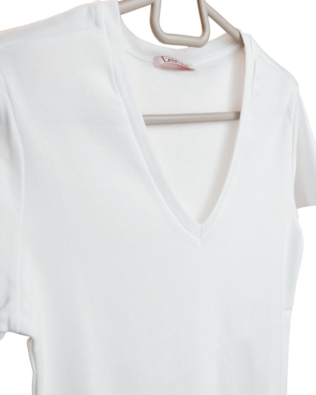 %100 Pamuk V Yaka Kadın Basic Tişört - Beyaz