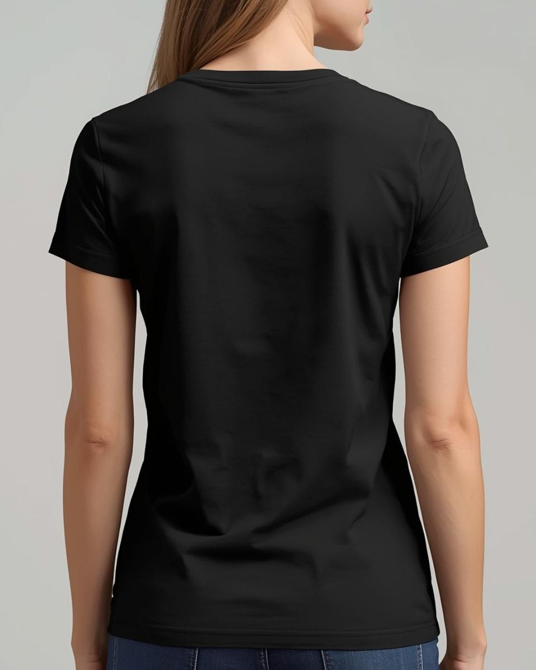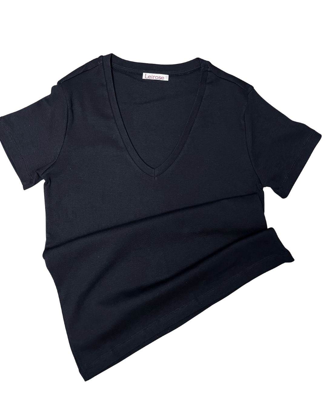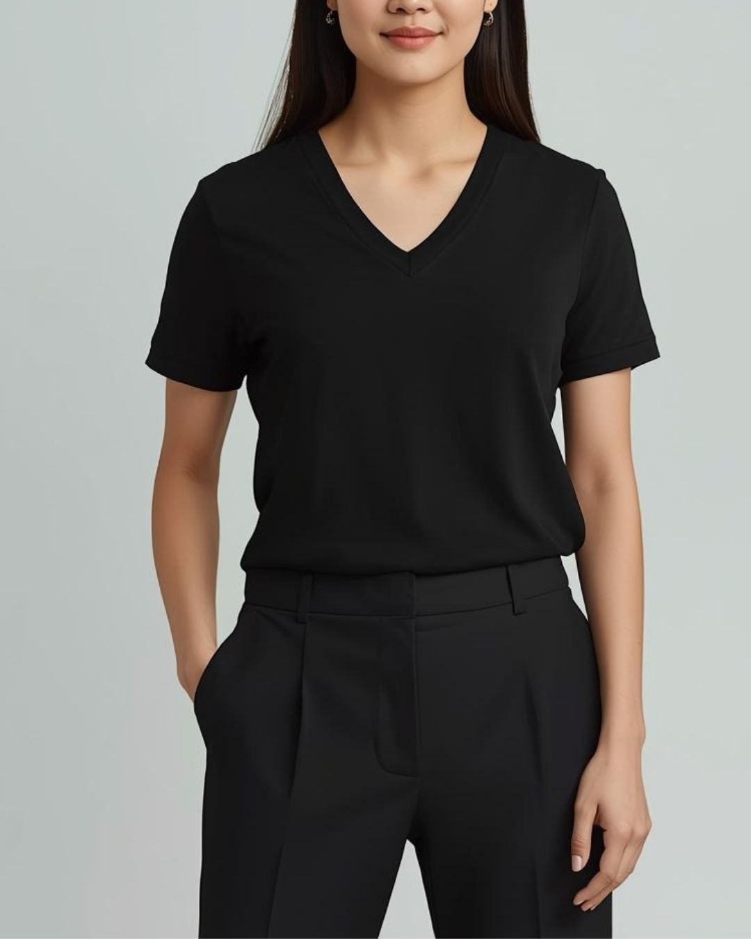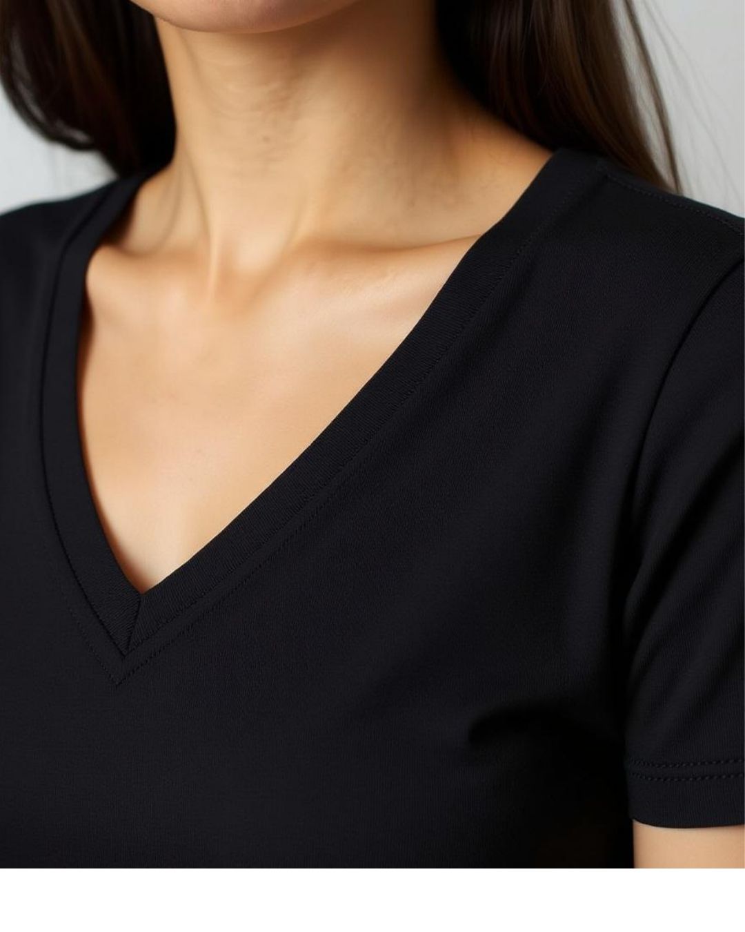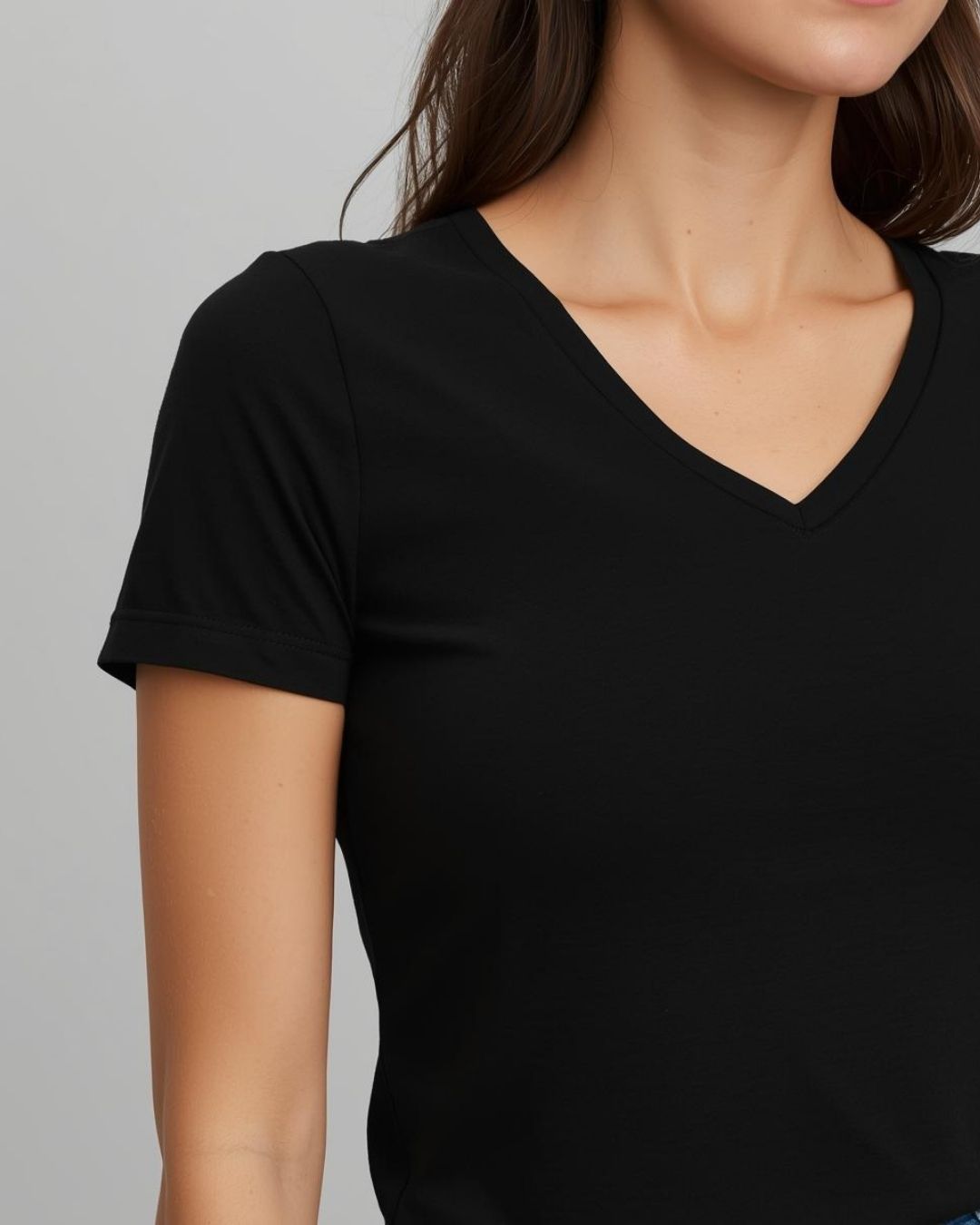 %100 Pamuk V Yaka Kadın Basic Tişört - Siyah