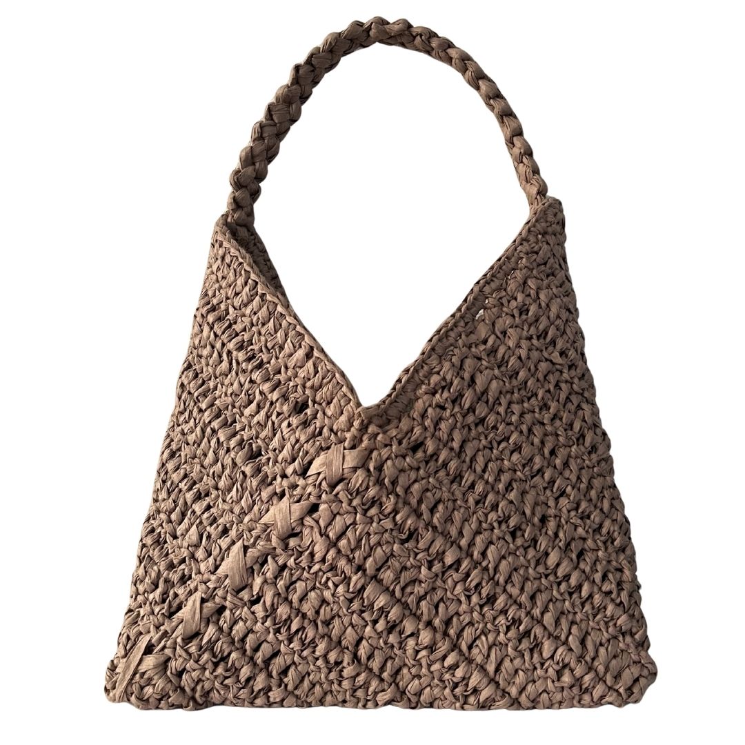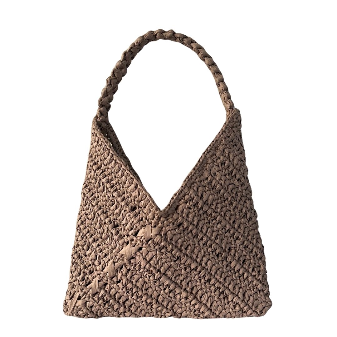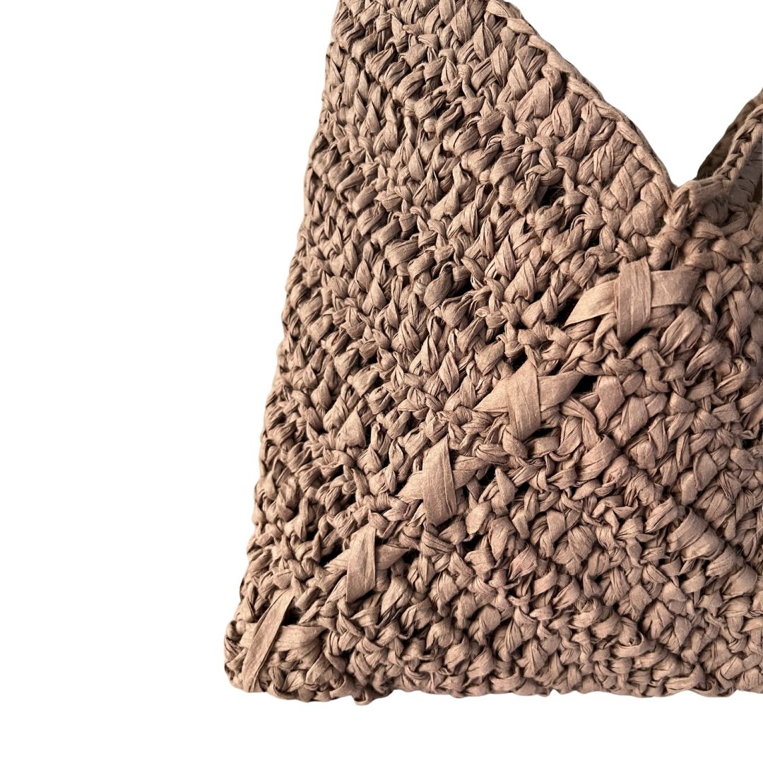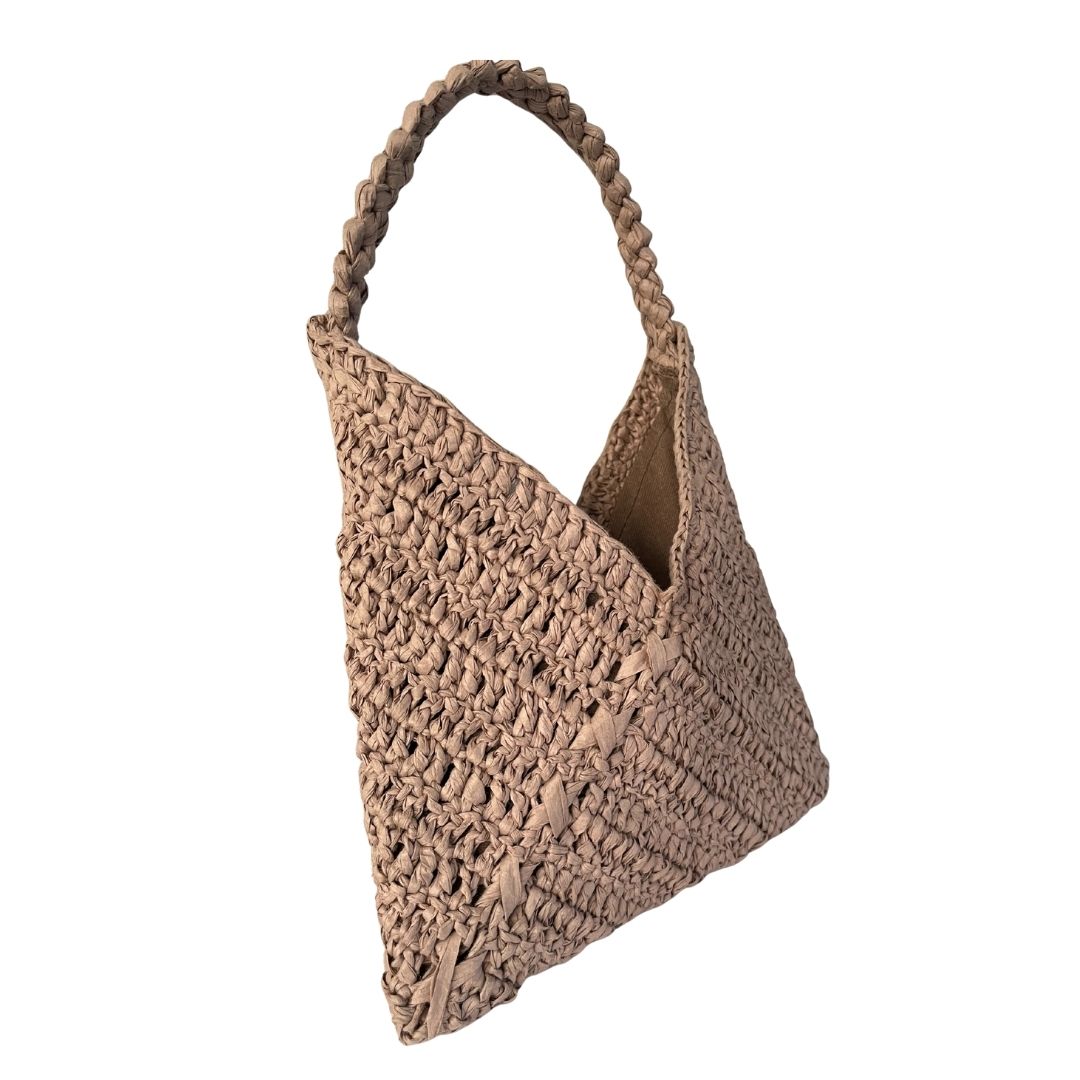 Rafya ipten üretilmiştir. El üretimidir. Taşıma sapı rafya ipten örülmüştür. Çanta 26 cm (en) x 26 cm (boy) ölçülerindedir. Çanta sapının yüksekliği 11 cm dir. İç hacmi geniştir. Çantanın astarı bordo renkli %100 pamuk kumaştır. Çantanın hiç bir bölümünde fermuar, çıt çıt vs metal materyal kullanılmamıştır. Çanta kombinlerin en önemli tamamlayıcı unsurlarındandır. Orta boy rafya çantanız gündüz ve gece her sezon her ortamda kullanıma uygundur. Bej rengi ile her kombinle uyumlu bir kullanıma sahiptir. Orta boyutu ve zarif motifi ile şıklığınızı bütünlemesi amaçlanmıştır.
